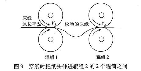 衛生紙復卷機上,存在線速度差的兩輥組間的衛生紙原紙(以下簡稱原紙)紙幅張力與該速度差并不是簡單的線性關系。在實際計算中,必須考慮進入兩輥組前原紙的張力狀態,并將其作為一個動態的變化過程…
